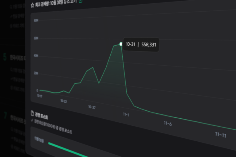 현재 개발중인 데이터 분석 도구로, 트렌드 분석과 관련 키워드를 조사하는데 시간을 아껴주는 키워드 도구입니다. 콘텐츠를 정하는 시간을 줄이고 가장 효과적인 발행 타이밍을 계산하기에, 블로그 및 SNS 콘텐츠를 운영할 때 많은 도움이 될 것입니다. 지난 5년간 매일 100만 개의 키워드를 수집하여 구축한 데이터베이스를 바탕으로, 현재 관심도 높은 키워드 분석과 관심도 패턴 그리고 향후 추세를 예측하는 모델입니다.